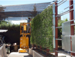 El sistema de plantación es sencillo, el sustrato se compacta en las celdas de los paneles y las especies vegetales se plantan mientras el panel permanece en posición horizonal. El sistema de riego por goteo se sitúa entre los paneles, el agua drena a través de toda la fachada y se recoge en la parte inferior. En esta página web se pueden consultar todos los detalles sobre el sistema que se puede utilizar tanto en exteriores como en interiores.
